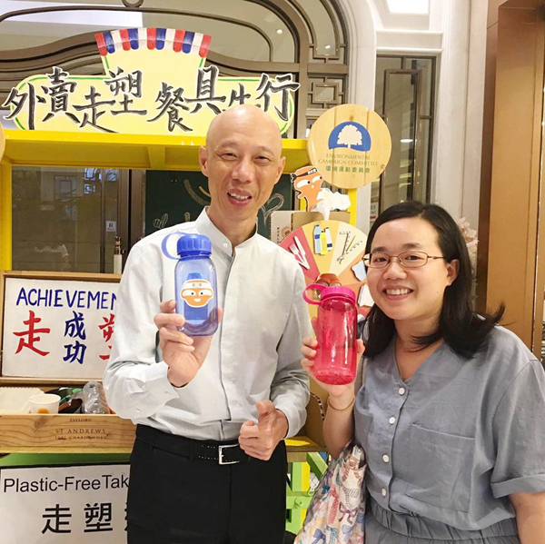 環境局局長黃錦星(左一)早前出席外賣走塑環保先行運動。