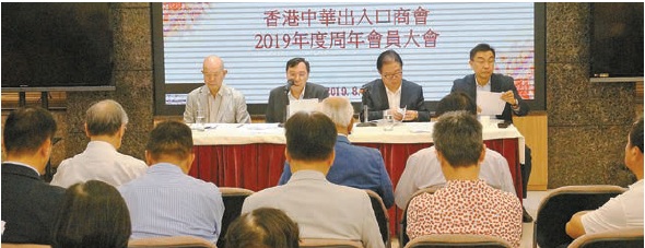 【香港商報訊】香港中華出入口商會昨日召開2019年度會員大會,是次大會由會長林龍安主持,陳勁副會長兼秘書長作會務報告,回顧中出過去一年的會務;副會長郭立邦、梁麟、榮譽會長李宗德、莊成鑫及近百名會董、會員出席。