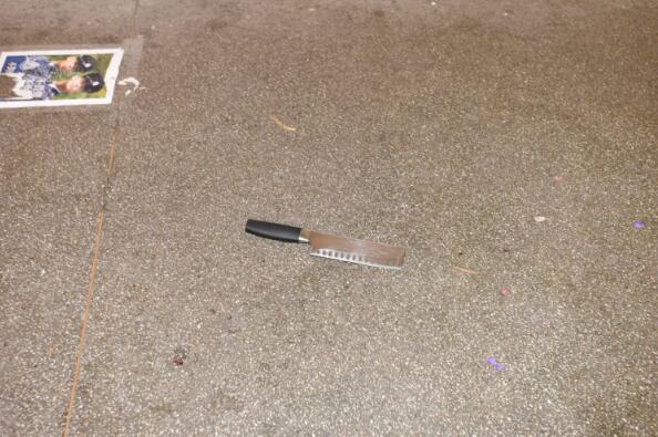 此時,該名中年男子突然取出一把約7吋長西瓜刀,並插向女子左肩,女子受傷後一度欲上前,阻止對方傷害其他在場人士。惟兇徒繼續舉刀,追斬其他人。該名被插傷的長裙女子隨後跑向自己求救,未幾不支倒地暈倒。