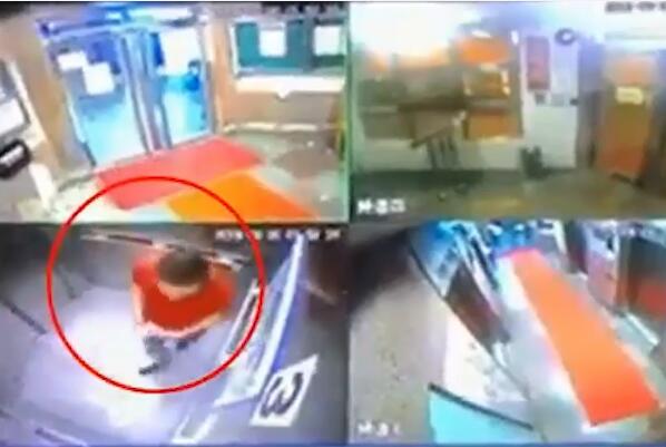疑似兇手(左下角)更換上衣後離開。影片截圖