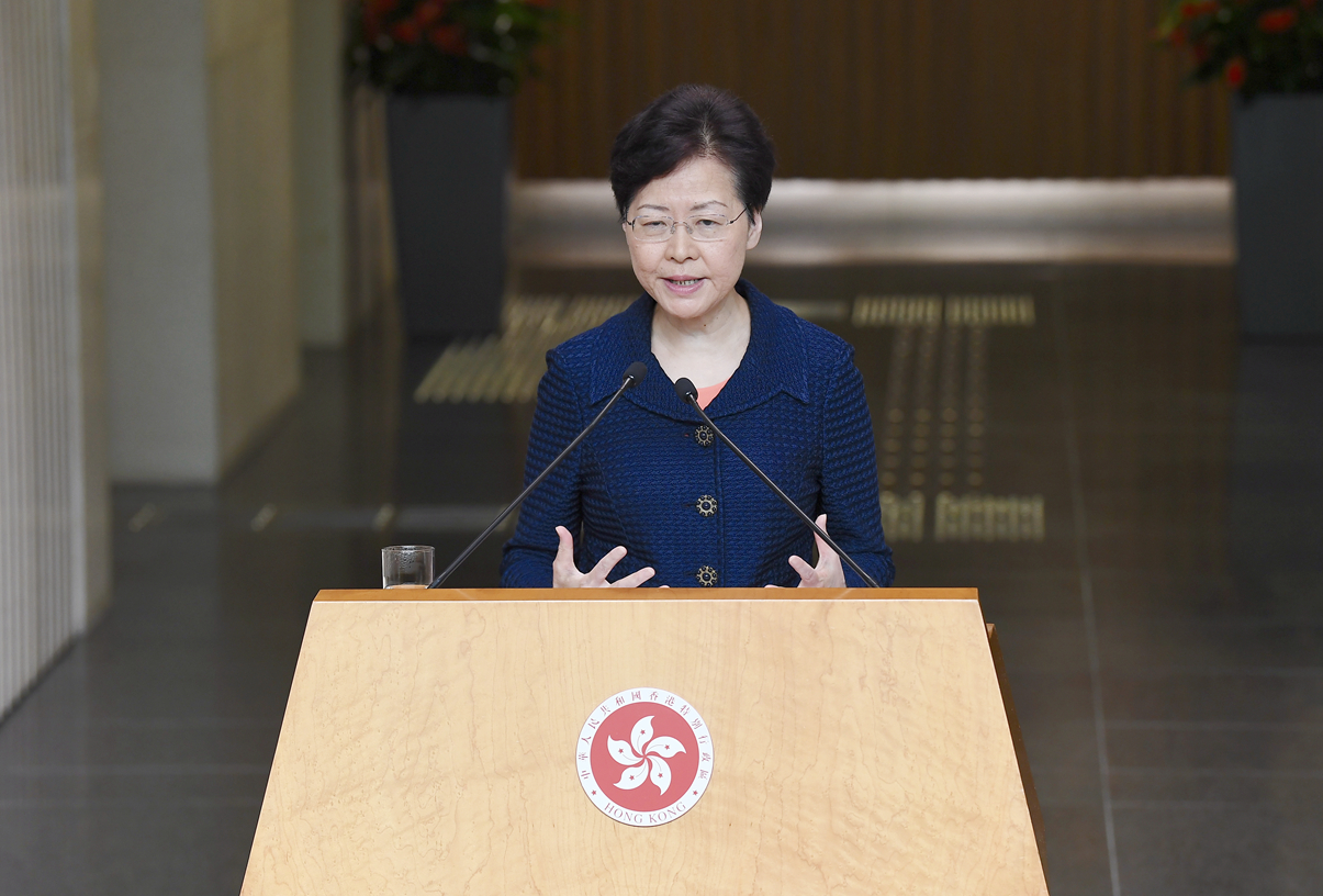 行政長官林鄭月娥昨日出席行政会议前见传媒。