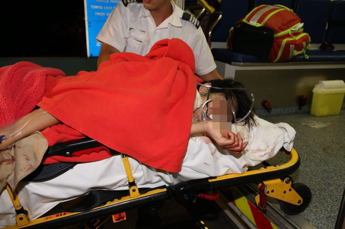 3名傷者中包括《信報》姓黃女記者(26歲),背部及肩膊中刀,傷及肺部,送往伊利沙伯醫院搶救,目前正留醫深切治療部,情況危殆。據悉她一直有參與返修例活動。另外為姓李任職銷售員女子(35歲),右手臂中多刀,情況穩定;及姓梁任職侍應男子(24歲),頭部受傷,縫了7針後已出院,下午由律師陪同到將軍澳警署落口供。