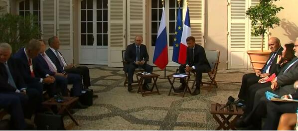 RT称,尽管普京没被邀请参加G7峰会,但他19日前往法国领导人夏季官邸布雷甘松堡会晤了法国总统马克龙。