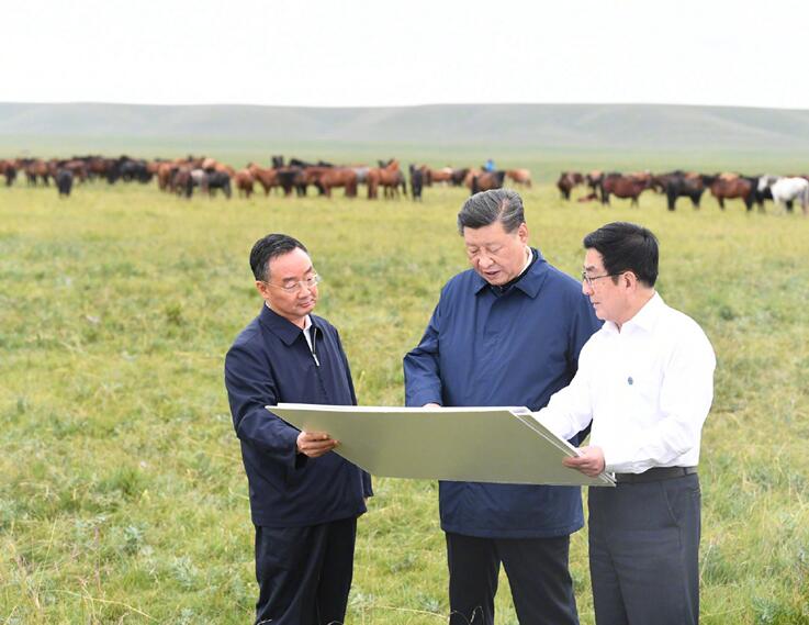 夕阳下的山丹马场,山川壮美,草肥马壮。正在甘肃考察的习近平总书记20日傍晚来到中农发山丹马场有限责任公司一场,实地察看马场经营发展情况,听取祁连山生态修复工作。习近平表示,这些年来祁连山生态保护由乱到治,大见成效。来到这里实地看一看,才能感受到祁连山生态保护的重要性。祁连山是国家西部重要的生态安全屏障,这是国家战略定位,不是一省一地自作主张的事情。甘肃生态保护工作体现了新发展理念的要求,希望继续向前推进。我们发展到这个阶段,不能踩着西瓜皮往下溜,而是要继续爬坡过坎,实现高质量发展,绿水青山就可以成为金山银山。