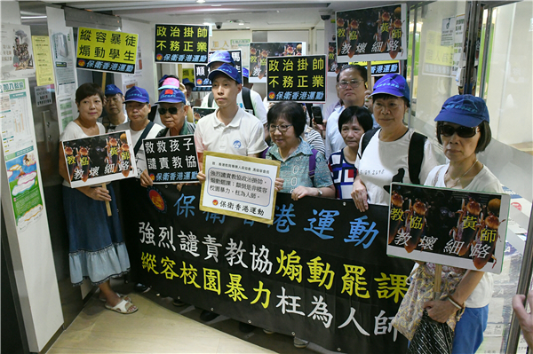 團體到旺角教協抗議,強譴責教協煽動學生罷課。