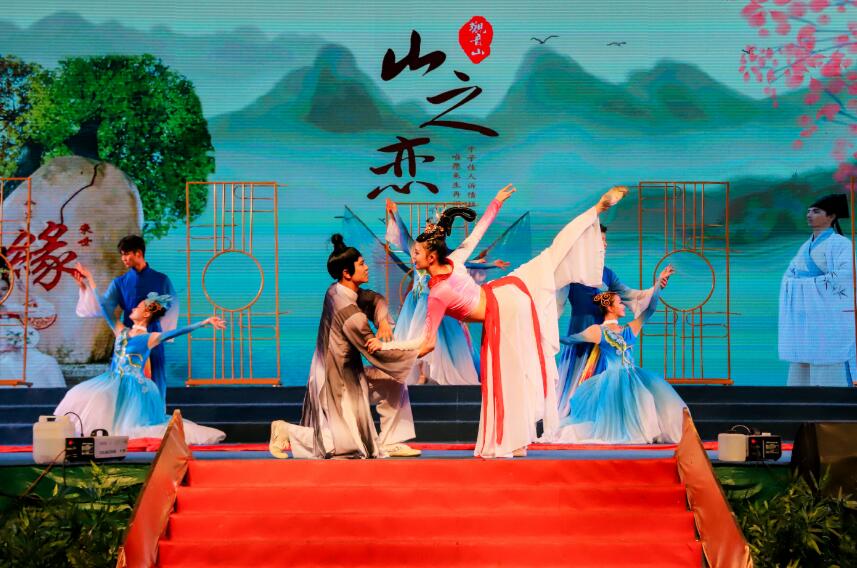 據悉,當天亦拉開了首屆東莞觀音山姻緣文化節的序幕,活動現場進行了傳統歌舞表演、茶藝表演、古代婚服展示、漢服麗人行等活動,吸引了眾多漢服愛好者前來,行古禮、秀漢服、賞古樂、品古韻。此外,由觀音山演藝團隊籌備數月的舞臺劇——《山之戀》首演,成為了觀音山傳統姻緣文化的代表作。景區負責人透露,《山之戀》在劇情、結構和表演上,融合了話劇、詩詞、音樂、舞蹈等多重藝術形式,在演繹有情人終成眷屬的唯美愛情的過程中,也通過畫面、舞臺的展示為觀眾帶來沉浸式的互動體驗。