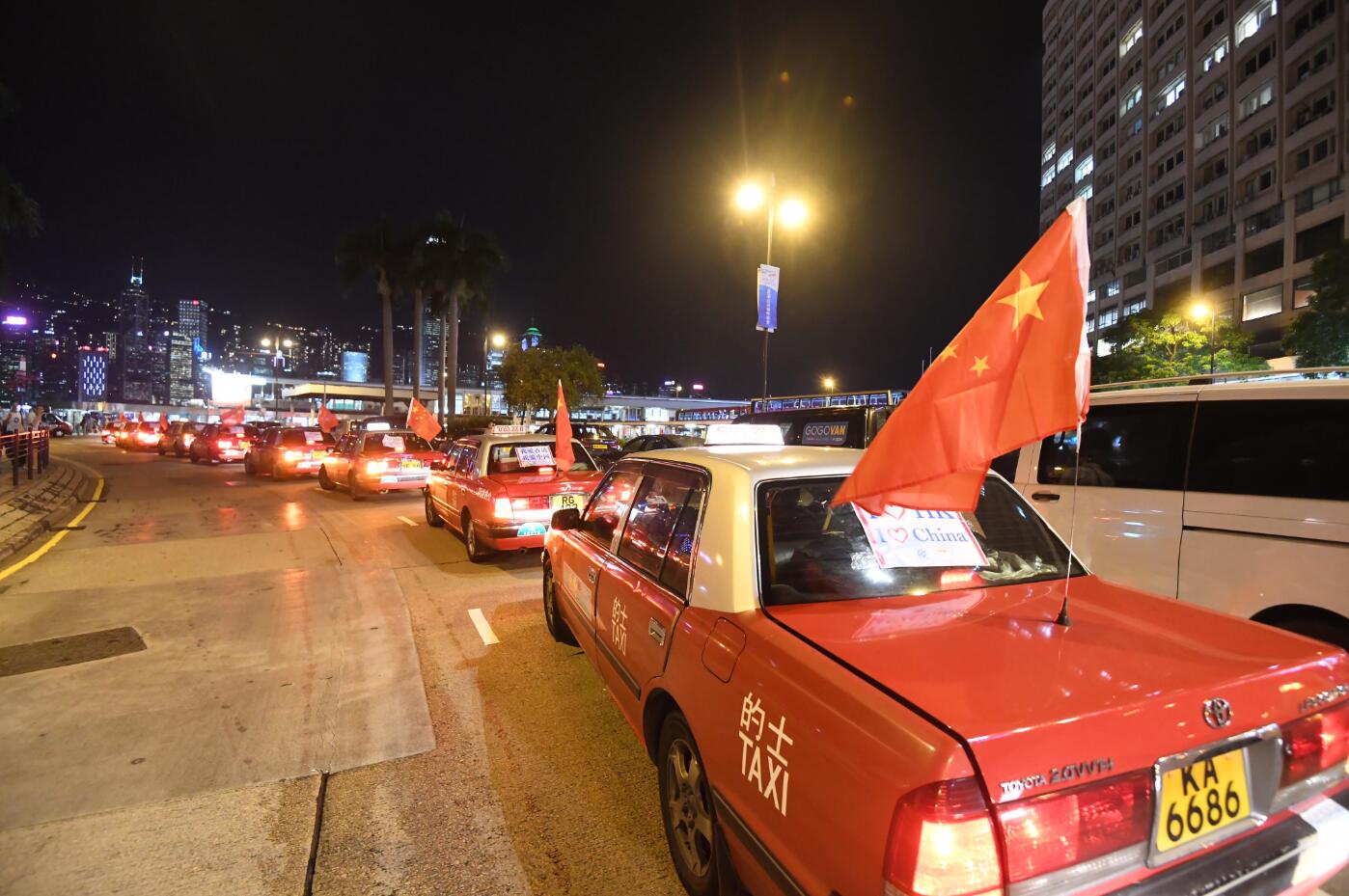 「守護香港 風雨同舟」 大行動中,500輛的士懸掛國旗巡遊。 記者 崔俊良攝