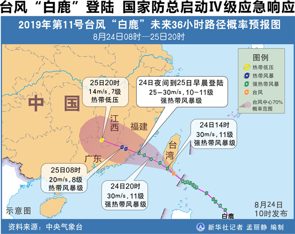值得注意的是,「白鹿」於昨日13時前後在台灣省屏東縣滿州鄉沿海登陸,登陸時中心附近最大風力11級(30米/秒,強熱帶風暴級),中心最低氣壓980百帕。預計,之後移入台灣海峽,於昨夜到今晨在福建漳浦到廣東惠來一帶沿海再次登陸。受其影響,24日-26日,華南沿海一帶將掀起狂風暴雨,粵北山區局地特大暴雨,地質災害風險高。福建多地已經狂風大作,中央氣象台發布颱風黃色預警,並提醒民眾做好防風雨準備。