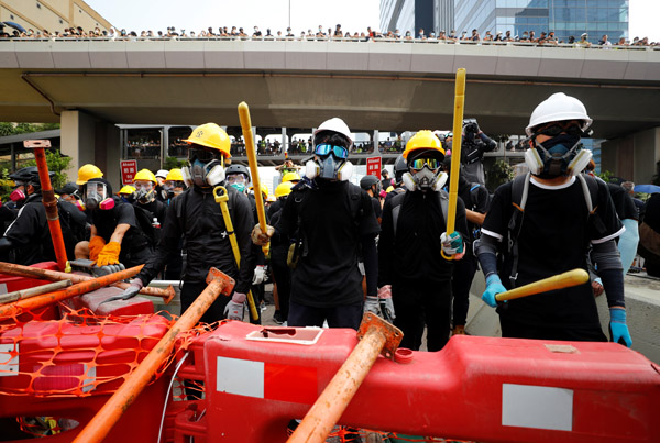 這個時候有黑衣人提出異議,認為應該開出一條車道,先放行車輛,避免過於擾民,「現在已經沒有地鐵了,如果再不讓車走的話,市民就走不了了。」不同意見的黑衣人爭執了一會兒,最後還是妥協了,著手搬開部分路障,讓堵在馬路中間的車輛離開。