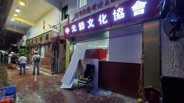 有激进示威者摘下悬挂在葵涌运动场的五星红旗,其后有暴徒把五星红旗铺平放在地上,任由其他示威者践踏,甚至有人朝着地上的五星红旗,挥动自己手持的美国国旗,该运动场职员之后收回五星红旗。