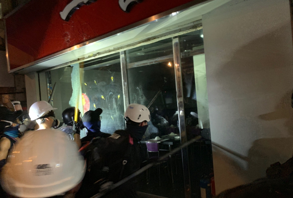 晚上8时,有示威者在沙咀道向几名警员进逼,警方后退,现场至少有三名警察拔枪指向示威者。此外,现场一辆警车被示威者用硬物击毁车窗。