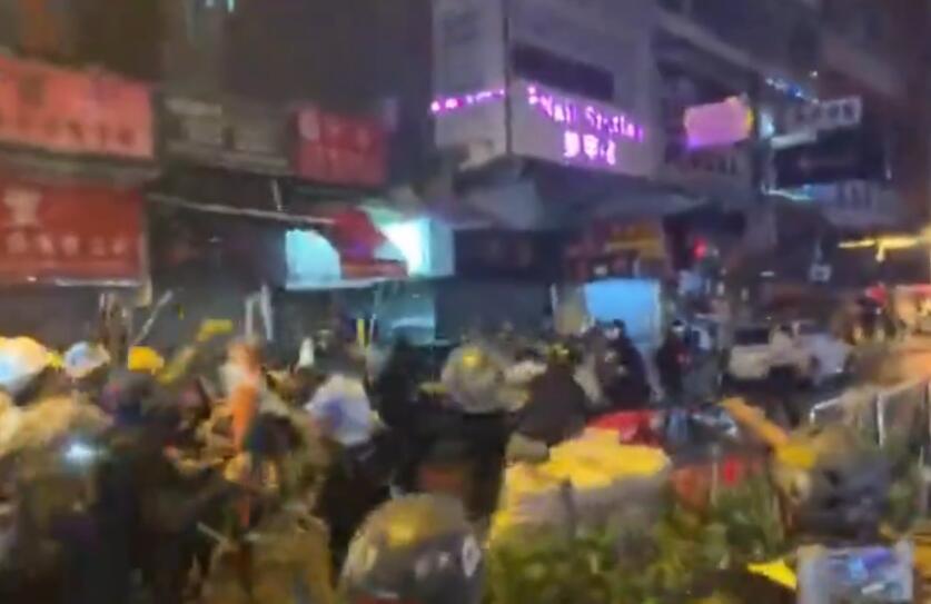 17时30分左右,示威者在杨屋道向警方防线推进,警方举黑旗。杨屋道有示威者向警方防线方向投掷汽油弹、砖头,警方施放多枚催泪弹。但示威者并未离开,仍在向警方防线投掷砖块及汽油弹。
