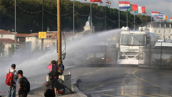 G7峰會在法國舉行,有反資本主義示威者堵塞道路,法國防暴警察除了出動催淚彈,還出動了水炮車,甚至向天鳴槍示警。這就是國際標準。的確,沒有任何地方會容許違法行為,遇到堵路之類必須使用武力驅散;其中,使用催淚彈、水炮車之類,均為適當武力,即使在G7峰會面前亦然,與會的美、英、德、法、意、加、日代表俱無異議。