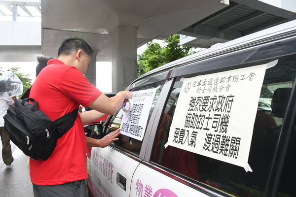 的士司機工會請願,冀港府施以援手。記者 馮瀚文攝