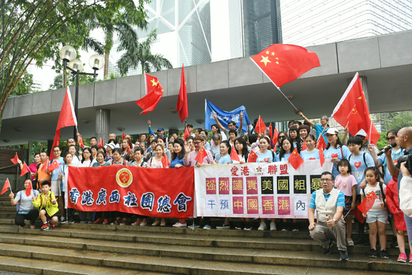 【香港商報網訊】記者周偉立報道:美國近期頻頻對香港事務發表偏頗言論。香港廣西社團總會及愛港聯盟等多個團體近百名香港市民,昨午由中環遮打花園遊行至美國駐港澳總領事館示威抗議,就美國不斷粗暴干預香港事務表達強烈不滿及譴責。