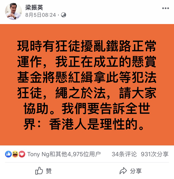 背景資料:8月3日和8月5日梁振英FB上帖子的截圖