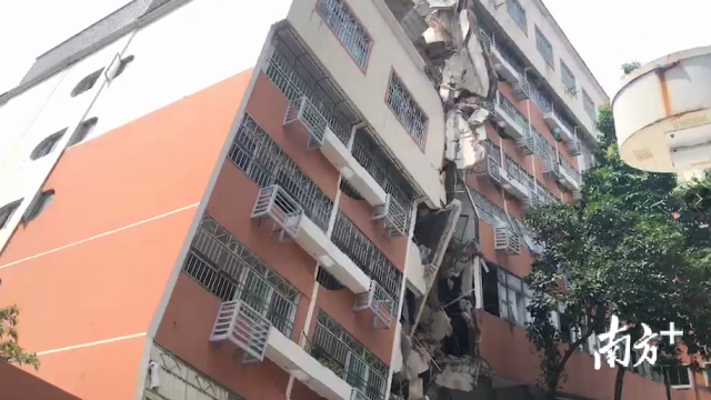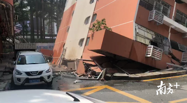 南都記者在現場看到,一棟居民樓傾斜後發生倒塌,導致周圍兩棟樓樓梯也出現不同程度受損。目前,深圳消防等各部門在現場進行救援。