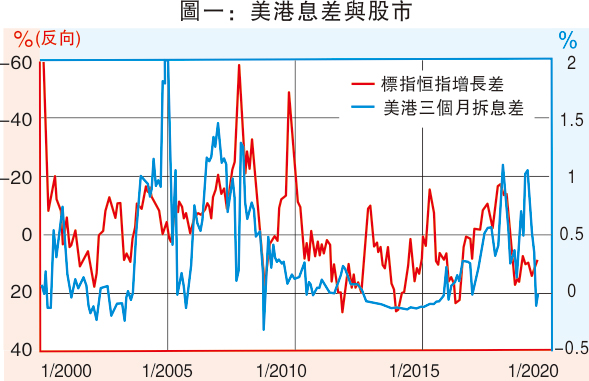 美港息差一直是影響港元走勢其中一個主因,因此投資者一直關心其去向。聯匯制度下美元兌港元在7.75至7.85之間上落,長線而言兩地息口應該大致一樣。不過實際上,短線息差走勢不穩定。自2016年以來,美元三個月拆息不時高於港元三個月拆息(曾超過100個基點),不過自今年初起,美國短期拆息穩步下行,本港則先跌後升(近日走勢更較為波動),美港息差自2月開始收窄,目前更處於負值。加上其走勢沒有均值回歸現象,估計美港息差走勢同時受其他重要因素影響。