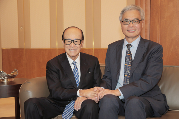 科大校長史維感謝李嘉誠(左)捐獻。