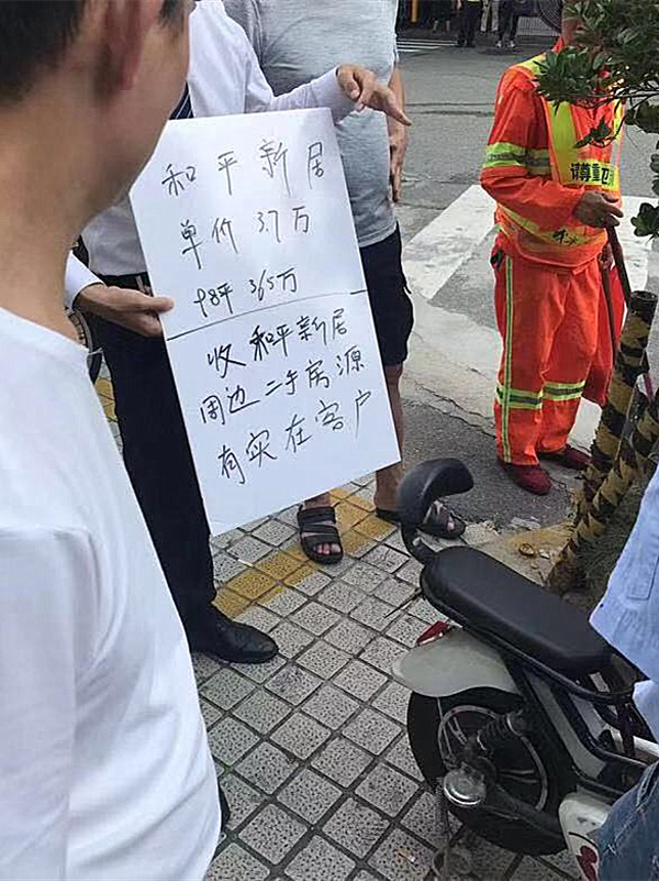 房產中介身掛簡易宣傳牌聚集現場