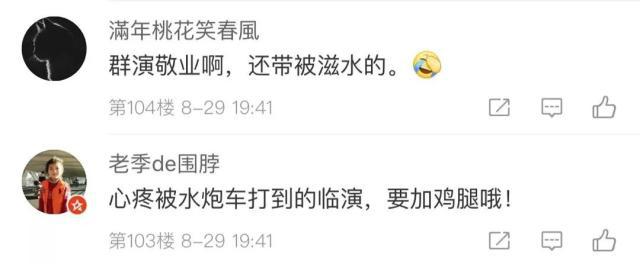 还有人心疼“被水炮车打到的群演”↓