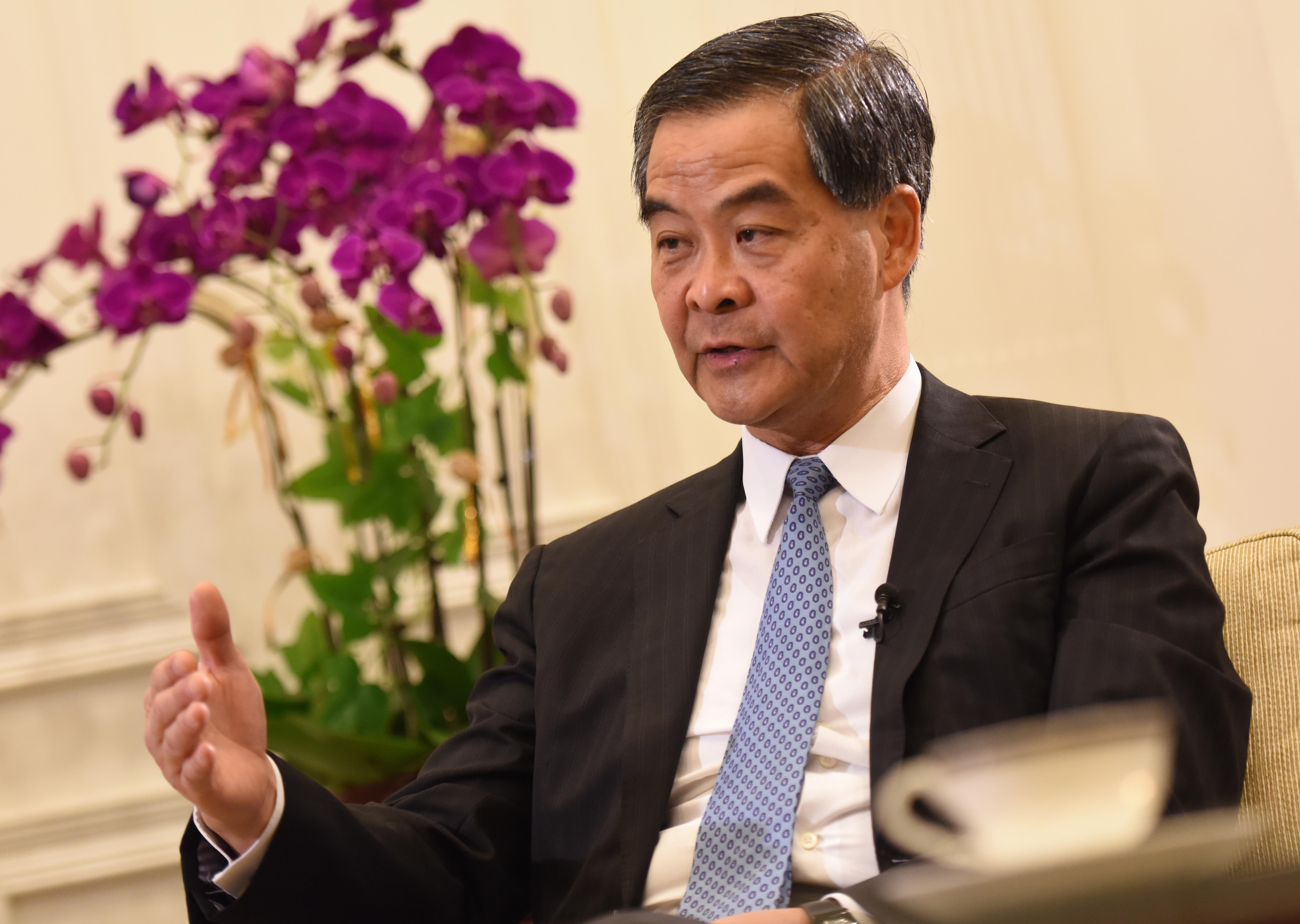 梁振英發表對香港時局的看法,指 「黑衣暴力運動」早已變質 。資料圖片