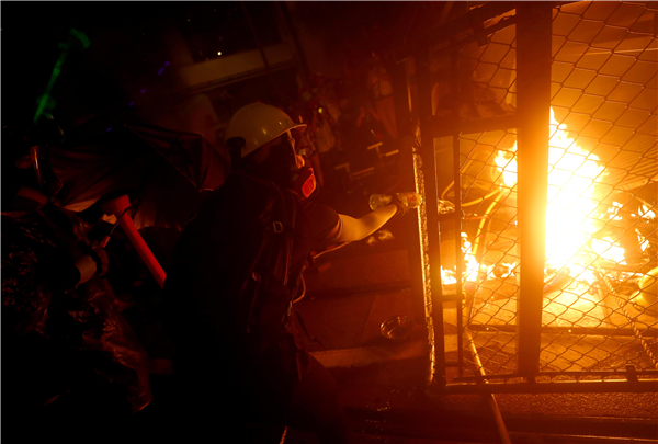 有暴徒瘋狂縱火並向火燄潑易燃劑。記者木子攝