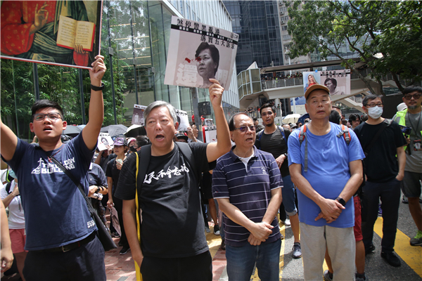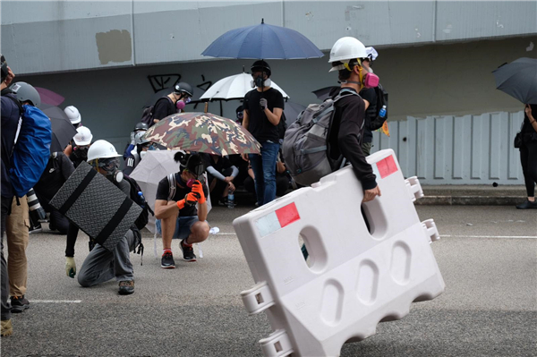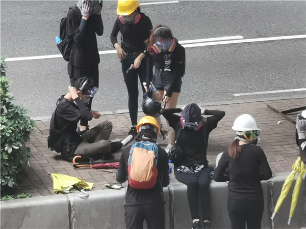遊行後,大批黑衣人由西面回頭走至夏愨道,即堵塞一帶的行車路,更作出各種暴力行為,如以雷射光照射在政府總部附近執勤的警員、試圖衝擊政總和立法會,甚至是投擲汽油彈。警員與示威者處於對峙狀態,氣氛緊張。