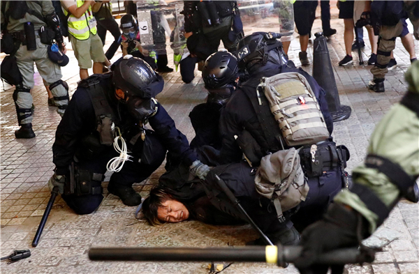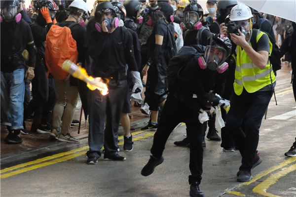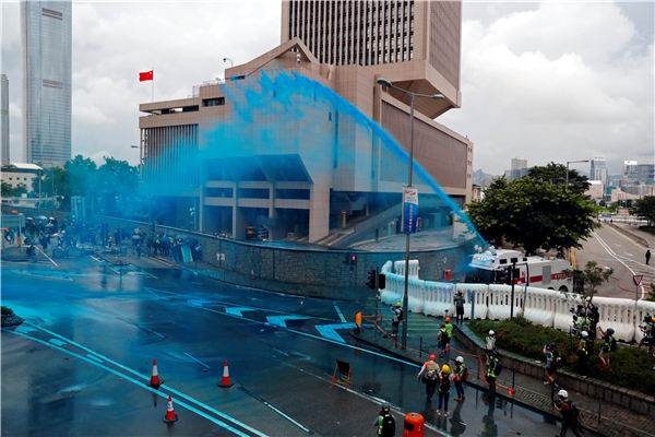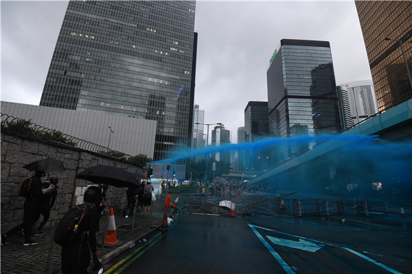 灣仔舉行的所謂宗教集會及遊行,最終又演變成暴力衝擊!大批激進示威者昨日下午在金鐘一帶佔據夏愨路、目標清晰地向已圍有水馬的政府總部及曾受重創的立法會大樓投擲汽油彈、腐蝕性液體彈及地磚。防暴警員相當克制,曾舉過黑旗警告示威者但不果,迫於無奈之下要發射催淚彈驅趕。警方的水炮車更三度「開炮」鎮壓,並首次發射藍色水柱,在現場產生震懾效果,成功在傍晚驅散在金鐘一帶的示威者。警方對大批暴徒衝擊政府總部及立法會,並投擲汽油彈提出強烈譴責。