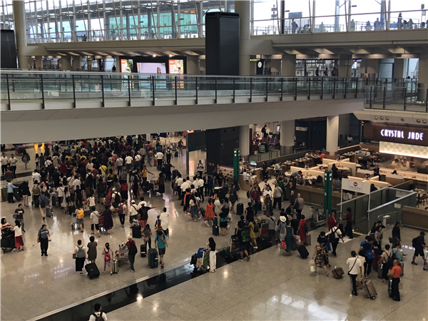 【15:29】警方指,大批示威者下午仍然逗留在機場一帶,部分人走出附近馬路,以大量水馬和雜物堵塞航天城交匯處及赤鱲角南路一帶的馬路,企圖癱瘓機場一帶的交通。現時機場一帶的交通非常擠塞。