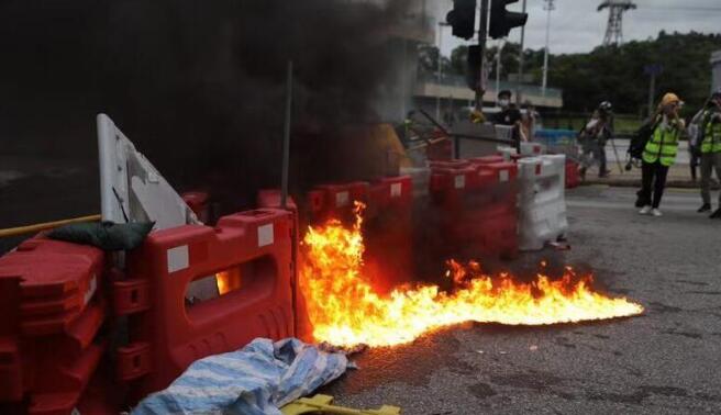 【18:20】示威者在赤鱲角南路、東涌迴旋處及達東路設置路障並縱火。示威者其後離開,消防在十多分鐘後到場,用了約兩分鐘將火救熄。