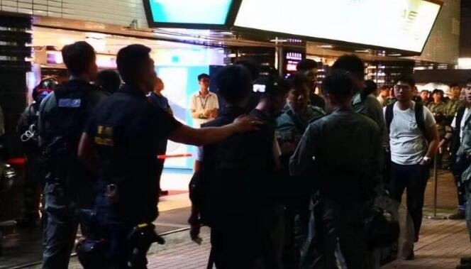 【19:52】一輛從東涌撤離的警車被暴徒包圍,有暴徒用激光筆照射車內的警員,亦有暴徒朝警車丟雞蛋。同時,現場暴徒使用極端侮辱性言語朝警方高聲喊罵,還有暴徒威脅警方稱「睇住你個仔就快開學」,現場一度混亂。