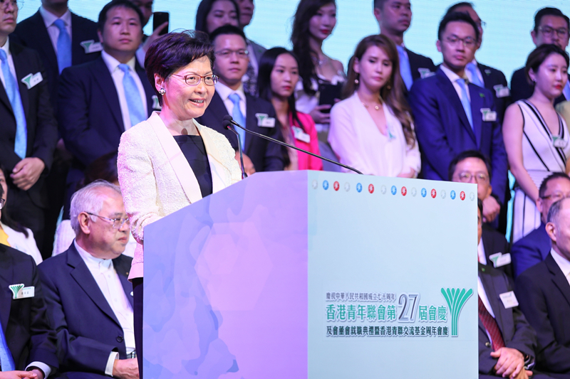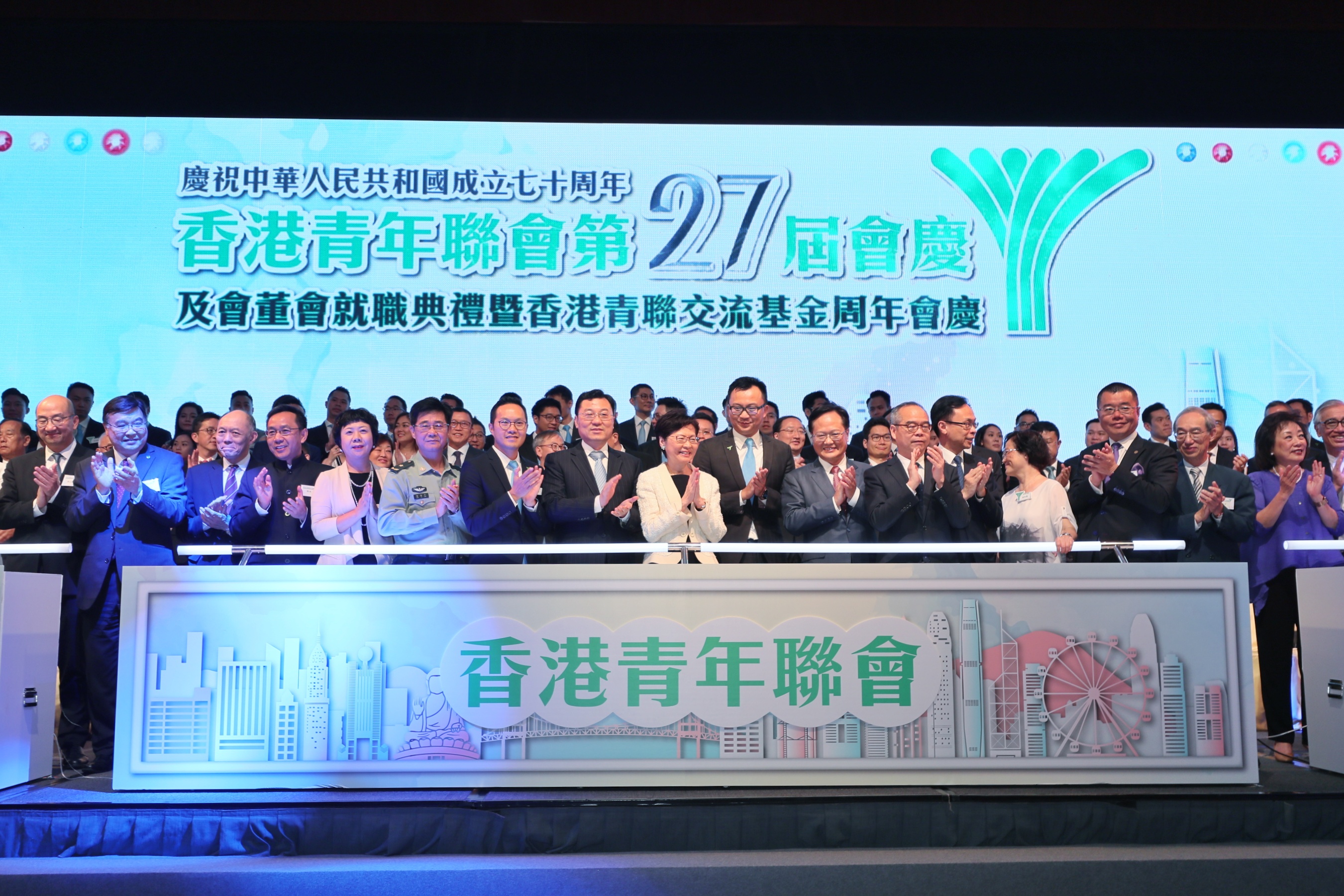 香港特別行政區行政長官林鄭月娥女士、外交部駐香港特別行政區特派員公署特派員謝鋒先生、中央駐港聯絡辦公室副主任陳冬先生、解放軍駐港部隊副司令員陳亞丁先生、中華全國青年聯合會秘書長劉愛平女士、民政事務局局長劉江華先生、政制及內地事務局局長聶德權先生等應邀出席主禮嘉賓,與各港澳台青年社團翹楚,共賀國慶及香港青聯成立二十七週年,見證青聯第二十七屆會董會就職。