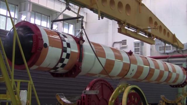 被放置在运输舱内的“波塞冬”核动力鱼雷 视频截图