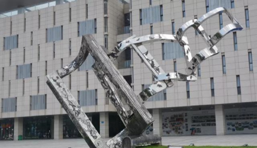據悉,座落在圖書館前的主題雕塑名為《智慧之窗》,高8米 ,長10.56米,側深寬4米,採用不鏽鋼鑄造與鍛造相結合。在作品說明中這樣寫道:「書籍鑄造靈魂,閱讀豐盈人生。天地始於鴻蒙,底層特殊肌理寓意人之初始,質樸懵懂;書本與窗戶交互向上,寓意以書為媒,格物致知,開啟世界之窗,點亮智慧之光。」