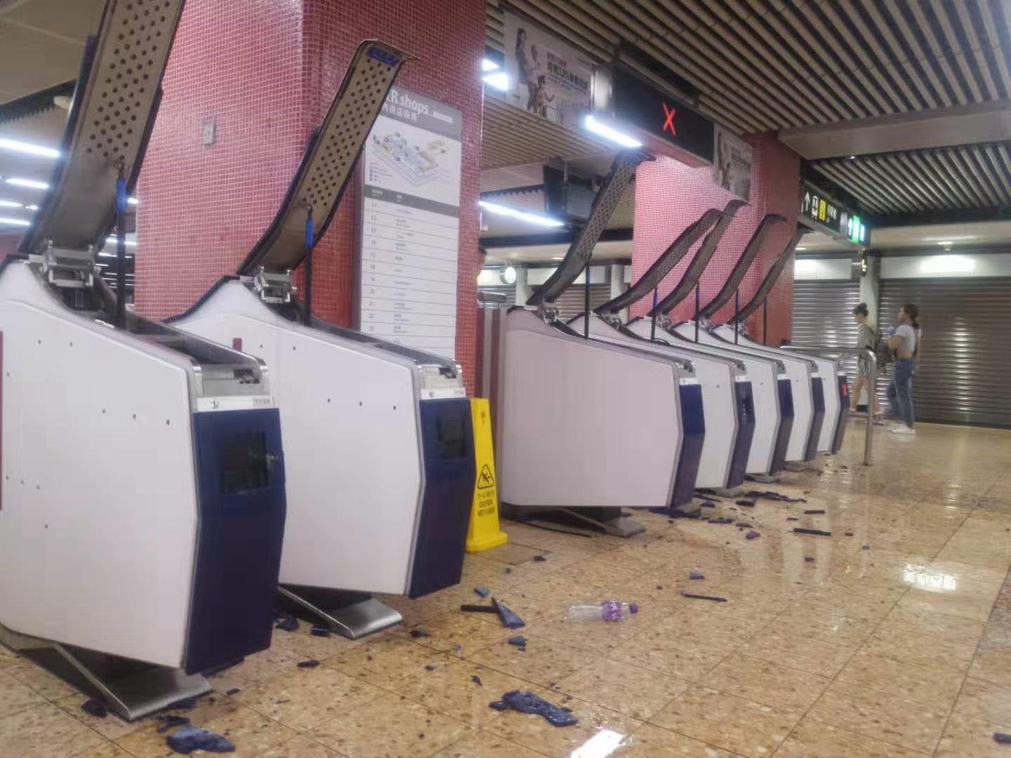暴徒昨晚走入太子及旺角站大肆破壞,其中入閘機及售票機被打爛及拆毀。記者馮瀚文攝