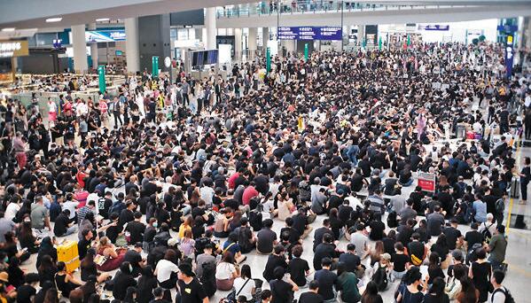 圖為早前「萬人接機」行動堵塞機場。 資料圖片
