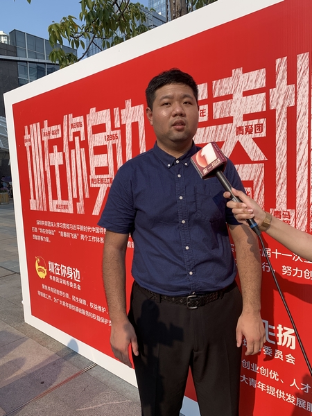 深圳市青少年發展基金會秘書長朱鐳舟接受采訪。