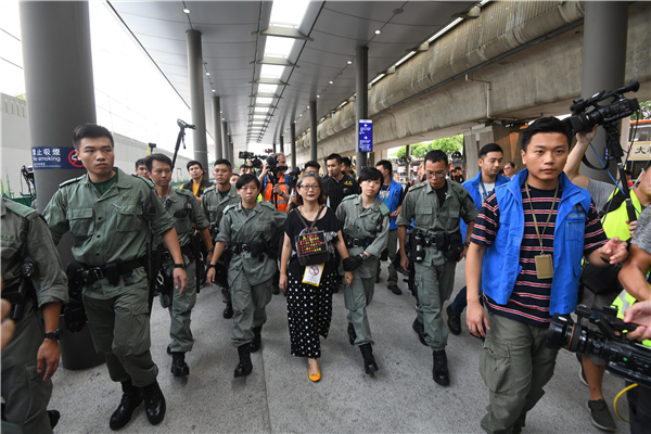 昨日上午,警方、機場管理局、港鐵等部門作出各種安排,務求機場維持正常運作。在高等法院禁制令下,所有人需要持有效的登機證、旅遊證件才可進入機場範圍,但在機場工作人士、記者可獲得豁免。記者昨日乘機場快線出站,於一號客運大樓外展示記者證,就可以進入機場範圍,包括離境大堂、接機大堂等。
