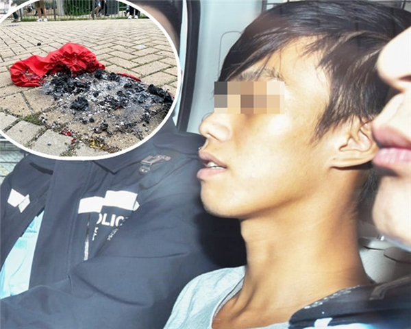 黃卓禮涉在東涌故意焚燒國旗(小圖)被提控。