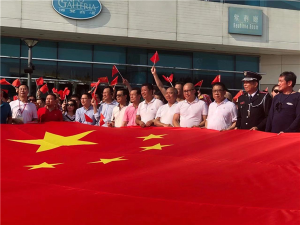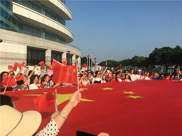 护旗手们雄赳赳、气昂昂,所有人行注目礼,五星红旗升起来,《义勇军进行曲》响起来、唱起来!金紫荆广场上的这一幕,够“燃”!大家时而引吭高歌《歌唱祖国》,时而齐喊“中国万岁!香港加油!”仪式过后,大伙儿簇拥在一面30多平方米的巨幅五星红旗周围,金紫荆广场成了红色的海洋!