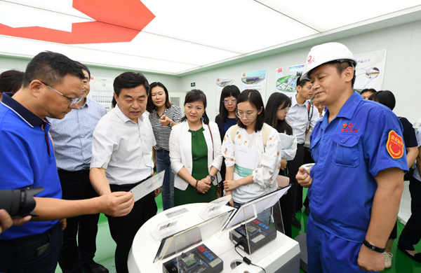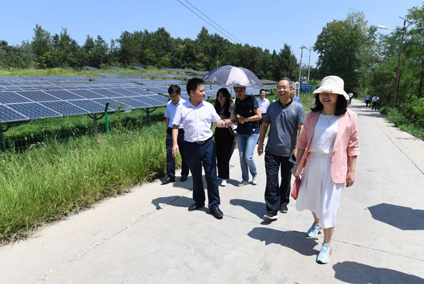 調研組又來到目前世界一次建設單體容量最大的水面漂浮式光伏項目——淮南市潘集區三峽新能源淮南光伏發電有限公司,這是三峽集團打造的新能源精品工程。該項目利用淮南當地豐富的太陽能資源,通過租賃採煤沉陷區閑置水面,建設與生態治理相結合的光伏基地,並積極探索「漁光互補」新模式,把沉陷區變成了綠色能源基地。該項目總裝機容量150兆瓦,相當於年節約標準煤約5.3萬噸,減少森林砍伐5.4萬立方米。農行通過創新採用「銀賃通」保理方式為該項目提供7億元金融支持,整個項目融資用時僅兩個月。