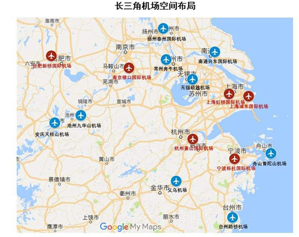 四是推動長三角地區機場群聯動發展。推動以浦東、虹橋兩場為核心的上海國際航空主樞紐建設,協同南京、杭州、合肥、南通、寧波等機場構成長三角機場群。服務長三角城市群的發展。擴展集疏運通道容量,構建空鐵聯運體系。加強通用機場的統一布局。