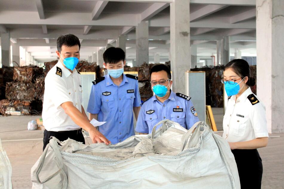 “對于危險固體廢物,我們不但要在國門一線攔截住,還要實施退運出境,確保國家環境生態安全,人民身體健康。”廣州海關副局長鄭軍表示,廣州海關貫徹落實海關總署“國門利劍2019”“藍天2019”專項行動部署,堅持把打擊“洋垃圾”走私作為“一號工程”來抓,堅決將“洋垃圾”拒于國門之外。2019年以來,在海關總署的統一指揮和廣東分署的協調下,廣州海關連續開展兩輪聲勢浩大的集中打擊行動,打掉8個走私“洋垃圾”團伙,查證走私進口廢塑料、廢五金1.36萬噸,查扣走私禁止進口廢礦渣3855.3噸。
