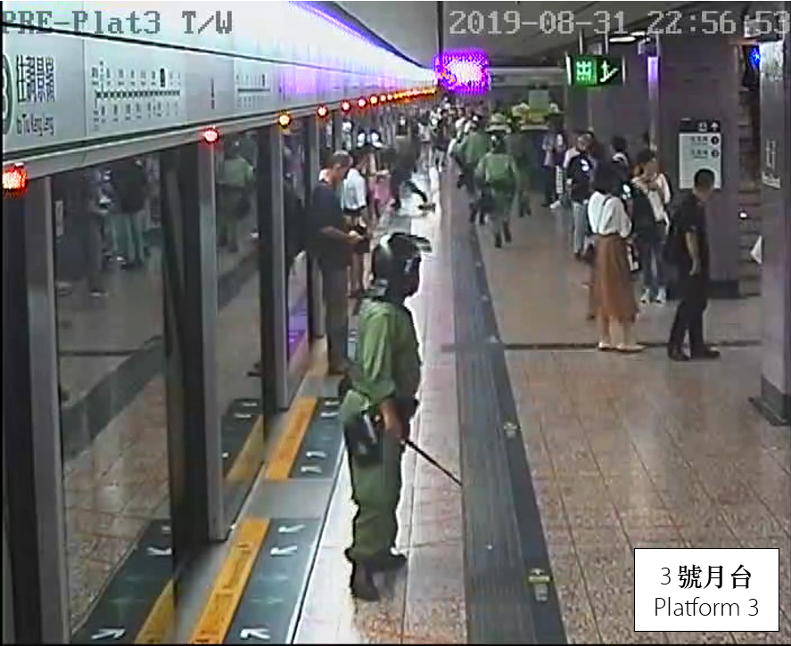港鐵昨亦透過新聞稿發放8月31日晚多個站內的26張閉路電視截圖。港鐵車務營運總監黃琨暐在記者會上表示,當晚太子站內共有3部閉路電視被損毀或塗污,包括2部位於車站4號月台的閉路電視,因此未能繼續錄影,片段並不齊全,但有關閉路電視截圖,經資料整理後,可清楚將時序重組(如圖)。他表示,據閉路電視顯示,當晚太子站有7名傷者由荔枝角站送院,站內並無死亡個案,他理解公眾對於太子站事件關注,但重申港鐵須在公眾關注與私隱之間取得平衡,並強調8月31日太子站和相關車站片段會保留3年。