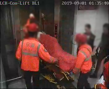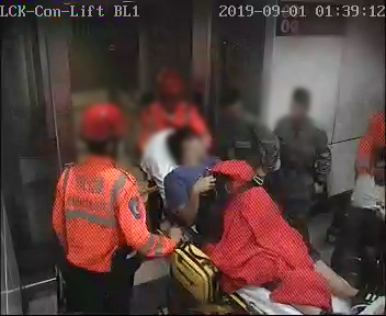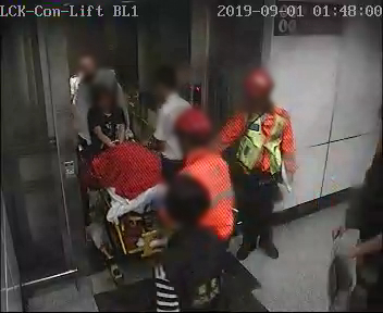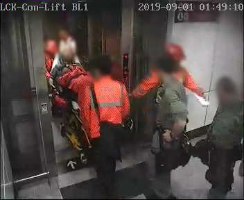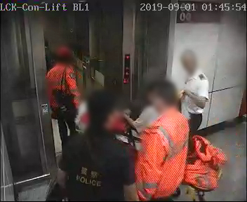 9 月1 日凌晨1 時35分:警員及救護人員經荔枝角站車站升降機運送第一名傷者離開