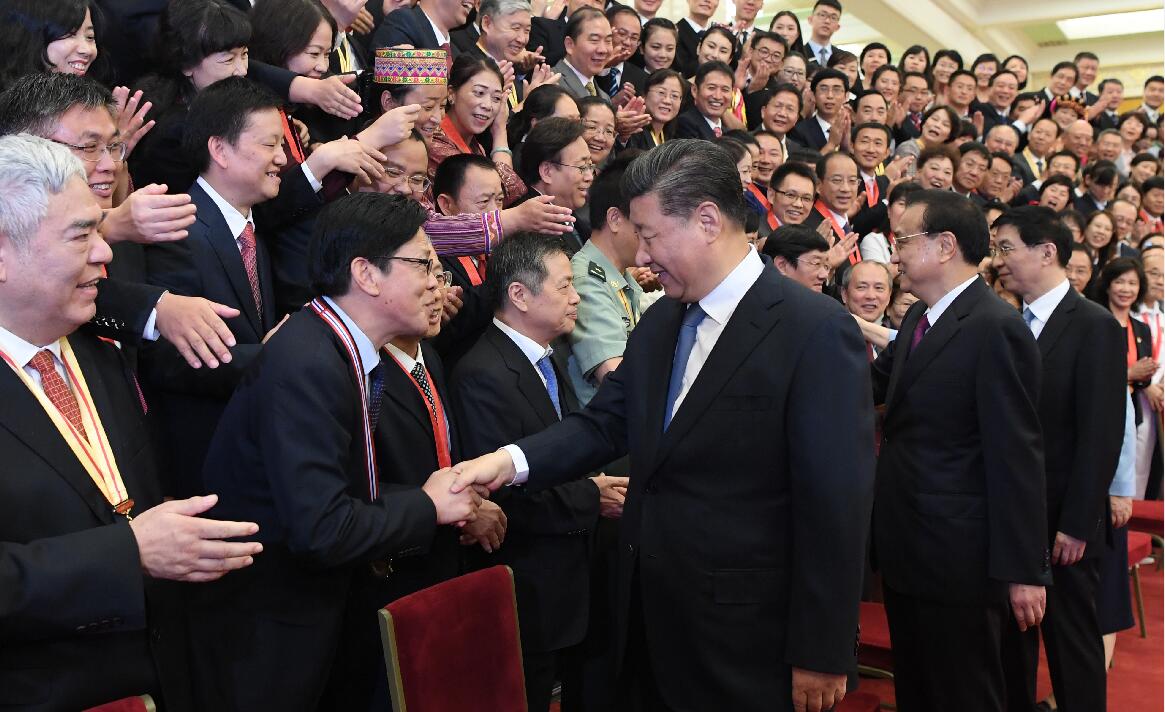 上午11时,习近平等来到人民大会堂北大厅,全场响起热烈掌声。习近平等走到代表们中间,同大家热情握手,不时交谈,并同大家合影留念。