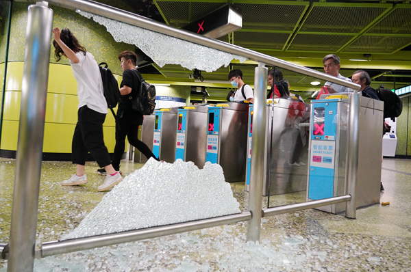 林鄭月娥指暴力破壞升級只會令到社會更撕裂。圖為日前港鐵灣仔站破壞情況。