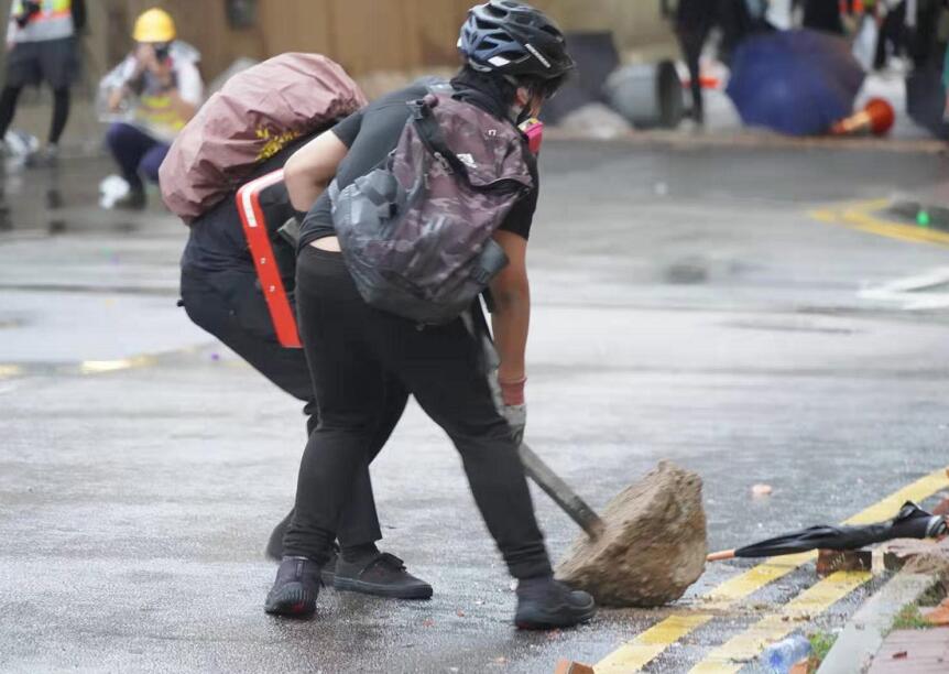 香港市面近月被暴徒破壞得滿目瘡痍,全港各區均有欄杆被他們拆毀,用作設置路障堵路,及地磚被掘起用於攻擊警察,有關情況在灣仔、銅鑼灣及旺角等暴徒經常聚集的地方更特別嚴重,一些被掘起的地磚已經改用水泥填補,但維修後不久又被破壞,交通燈亦被破壞。