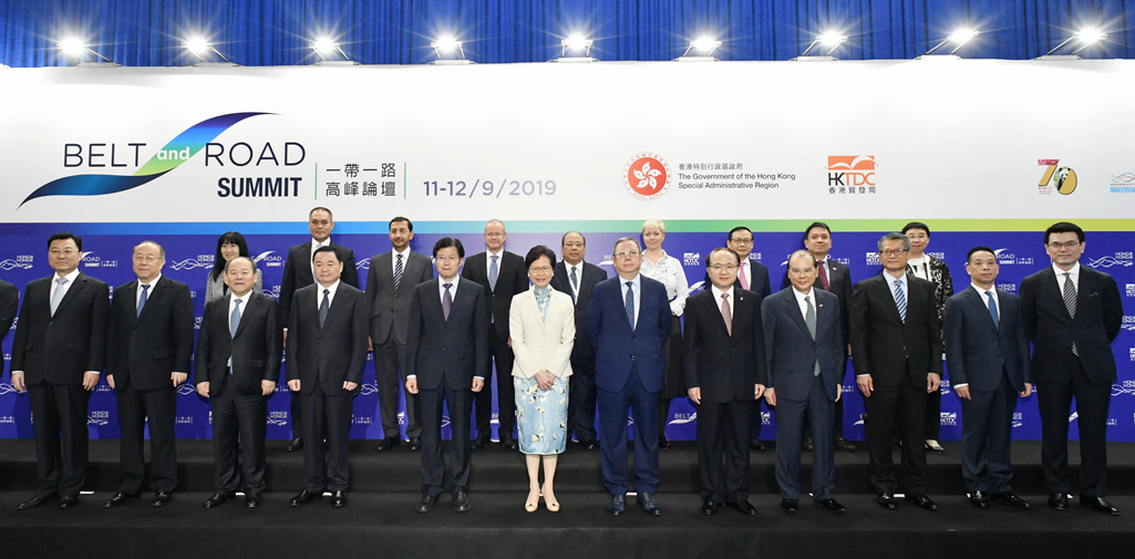 第4 屆「一帶一路高峰論壇」昨在港開幕,圖為出席嘉賓大合照。
